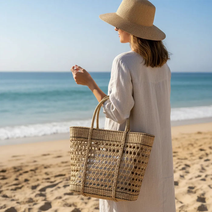 Con un tamaño adecuado, este bolso ofrece suficiente espacio para llevar tus esenciales, desde toallas y protector solar hasta libros y accesorios personales. Las asas resistentes garantizan comodidad al transportarlo, permitiéndote disfrutar de tus actividades sin preocupaciones. Este bolso no solo es funcional, sino que también añade un estilo bohemio a cualquier atuendo. Su estética natural se adapta fácilmente a diferentes ocasiones, ya sea un día de campo, una salida casual o como un elemento decorativo en tu hogar. Aporta un toque único a tu vida diaria y transforma cualquier momento en una experiencia especial.