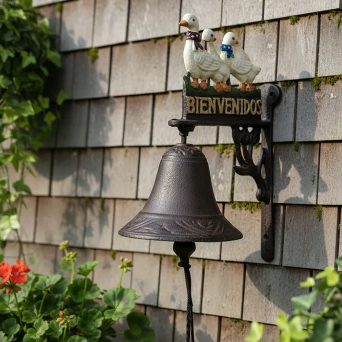 Esta campana para puerta con diseño de patos es una pieza encantadora que aportará un toque de calidez y originalidad a tu hogar. Esta campana combina funcionalidad y estética, convirtiéndose en un elemento decorativo ideal para cualquier entrada.