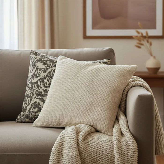 Es ideal para quienes desean renovar su espacio sin complicaciones. Con un cierre práctico, es fácil de colocar y quitar, lo que facilita su mantenimiento. Además, es apta para lavadora, lo que asegura una limpieza sencilla y rápida. Su color beige neutro permite combinarla con una amplia variedad de colores y texturas, haciendo que sean un complemento versátil para cualquier decoración.