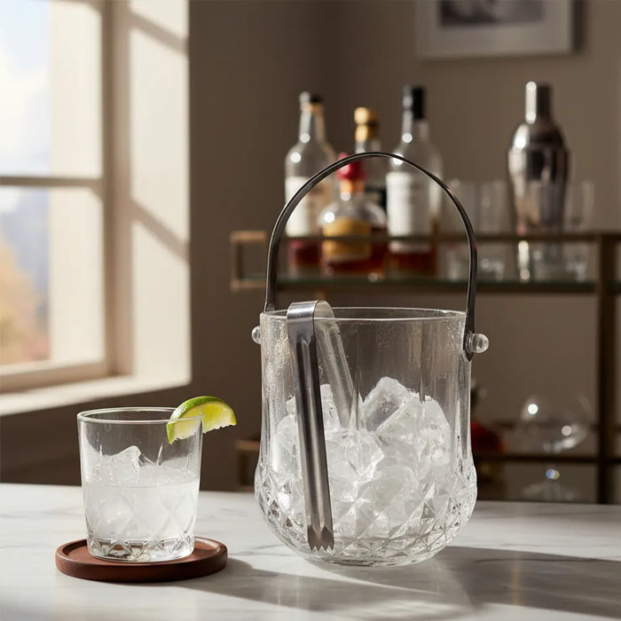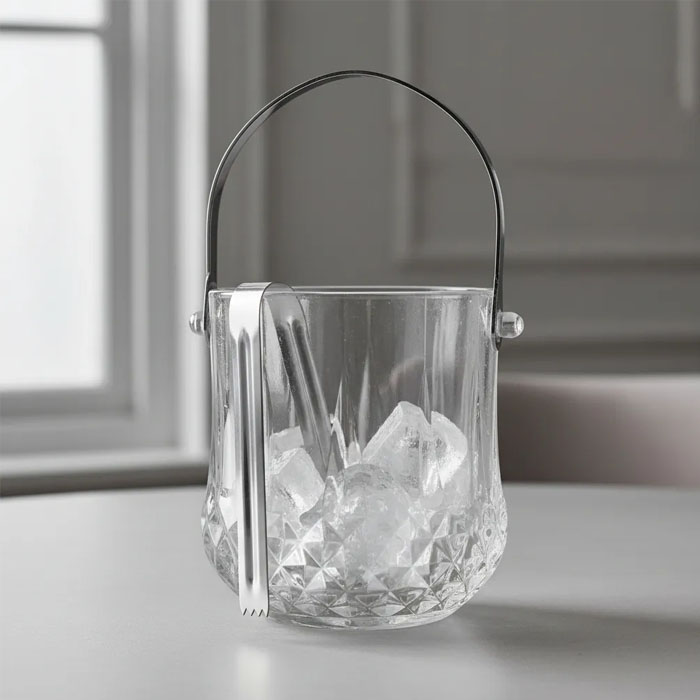 Fabricada en vidrio, esta hielera combina durabilidad y estilo, convirtiéndola en un accesorio atractivo para su hogar. Incluye una pinza que permite servir el hielo de manera cómoda y práctica, asegurando que sus invitados disfruten de una experiencia agradable.