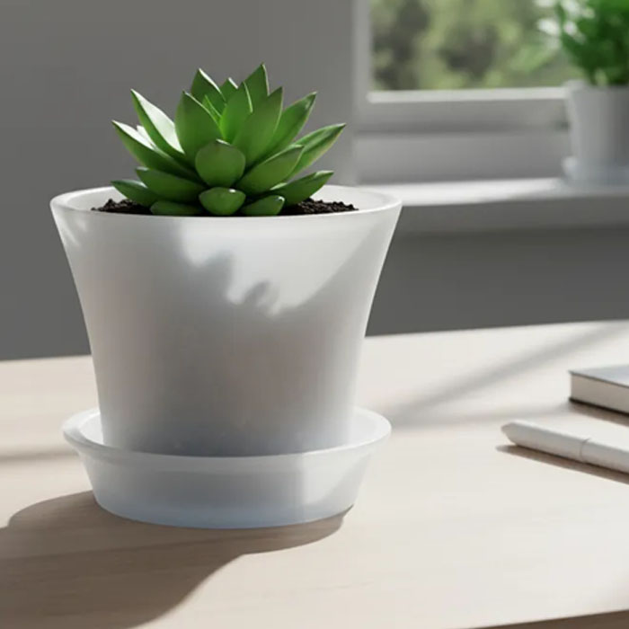 El plato incluido no solo añade un toque estético, sino que también ayuda a mantener la limpieza del área donde se ubique la maceta.