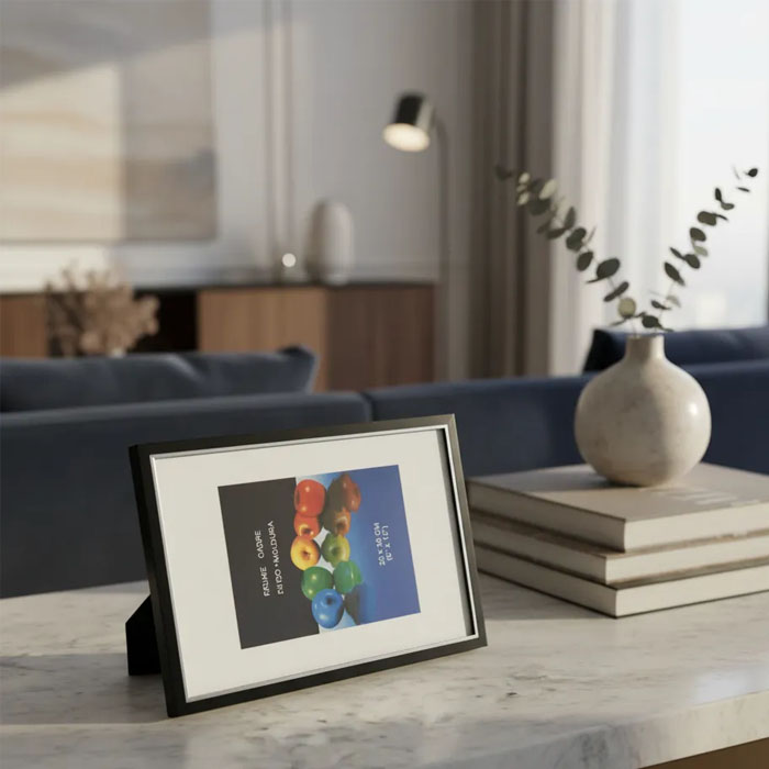 El color negro del marco permite que tus fotografías brillen, creando un contraste visual que atraerá la atención de todos. Además, su fácil manejo y montaje hacen que cambiar las fotos sea un proceso sencillo y rápido, permitiéndote actualizar tus recuerdos en cualquier momento.