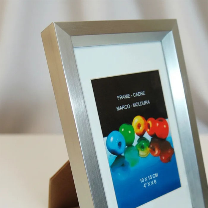 Transforma tus recuerdos en arte con este Marco Para Fotos Plateado. Este marco de foto está diseñado para resaltar tus imágenes más preciadas, aportando un toque moderno y sofisticado a cualquier espacio. Fabricado en aluminio de alta calidad, este marco es duradero y ligero, ideal para exhibir tus fotos de 15 cm de altura y 10 cm de ancho.