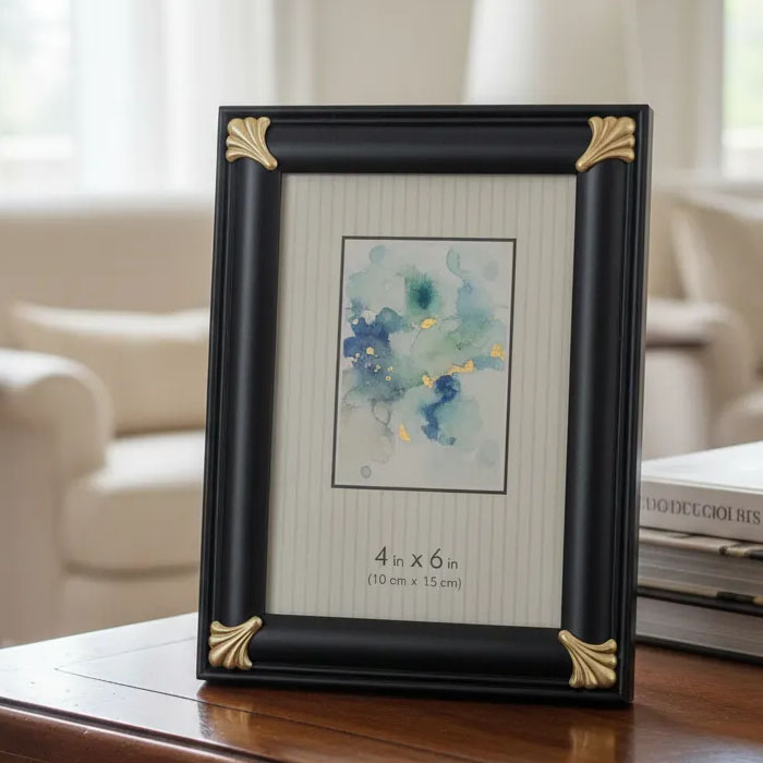 Fabricado con materiales de alta calidad, este portarretrato no solo es duradero, sino que también ofrece una presentación impecable para tus fotografías. Su estilo contemporáneo lo convierte en un complemento versátil que se integra con diferentes estilos decorativos, desde lo clásico hasta lo moderno.