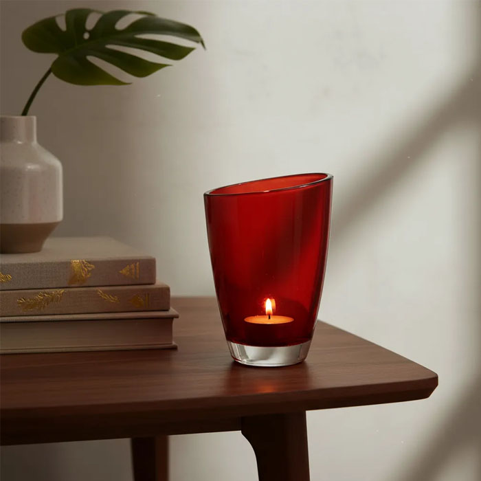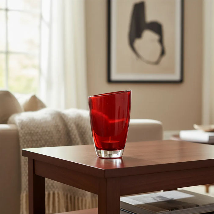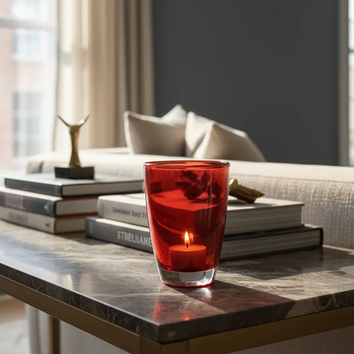 Fabricado en vidrio de alta calidad, su acabado brillante resalta la luz de las velas, creando un ambiente cálido y acogedor. Su estilo moderno se adapta perfectamente a diversas decoraciones, desde minimalistas hasta más elaboradas, aportando un toque de sofisticación.