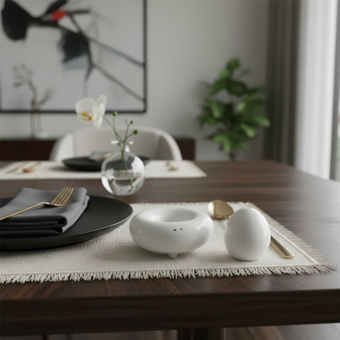 Este Set de Salero y Pimentero de Porcelana Blanca es la elección perfecta para quienes buscan elegancia y funcionalidad en la mesa. Con una altura de 8 cm, estos recipientes son ideales para sazonar tus platillos con estilo, aportando un toque sofisticado a cualquier comida.
